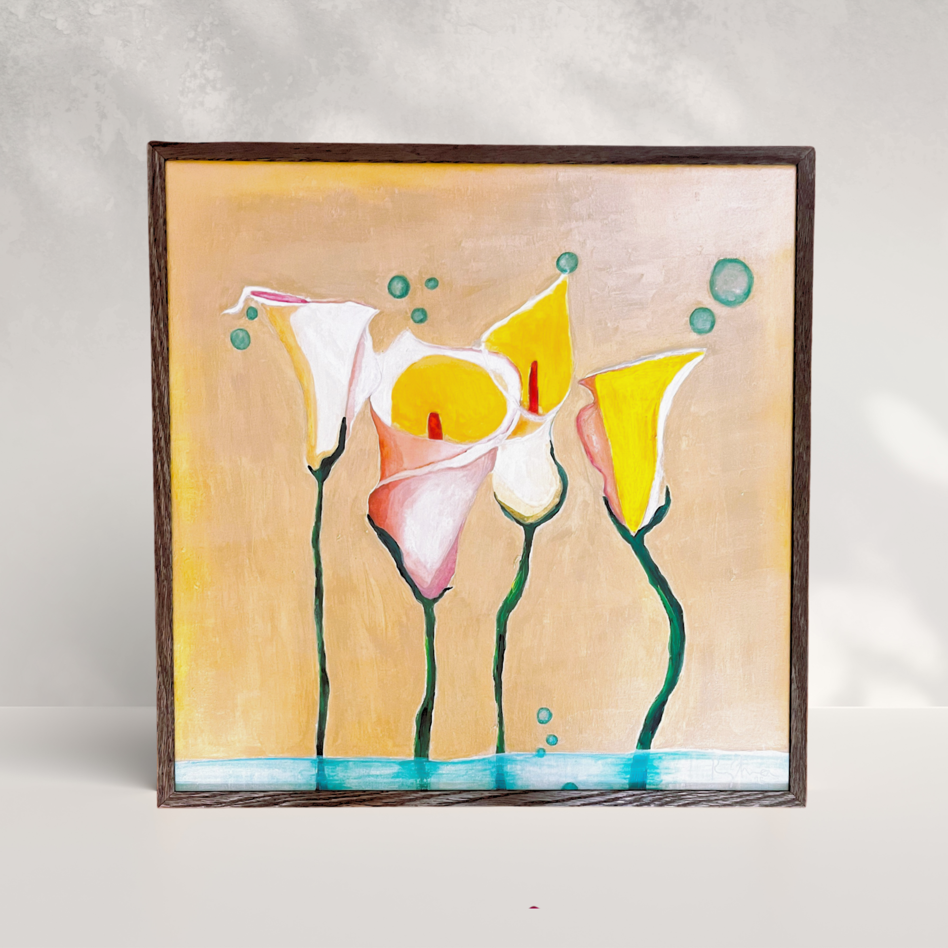 Tam, kde žena zakoření je originální autorská ilustrace s květinovým motivem, který symbolizuje ženskou sílu, ukotvení a propojení s přírodou. Kombinovaná technika akvarelu a akrylu vytváří jemnou, ale výraznou strukturu, která vynikne v moderním i klidném interiéru. Obraz je malovaný na sololitové desce, zasazený do dřevěného rámu a připravený k zavěšení.